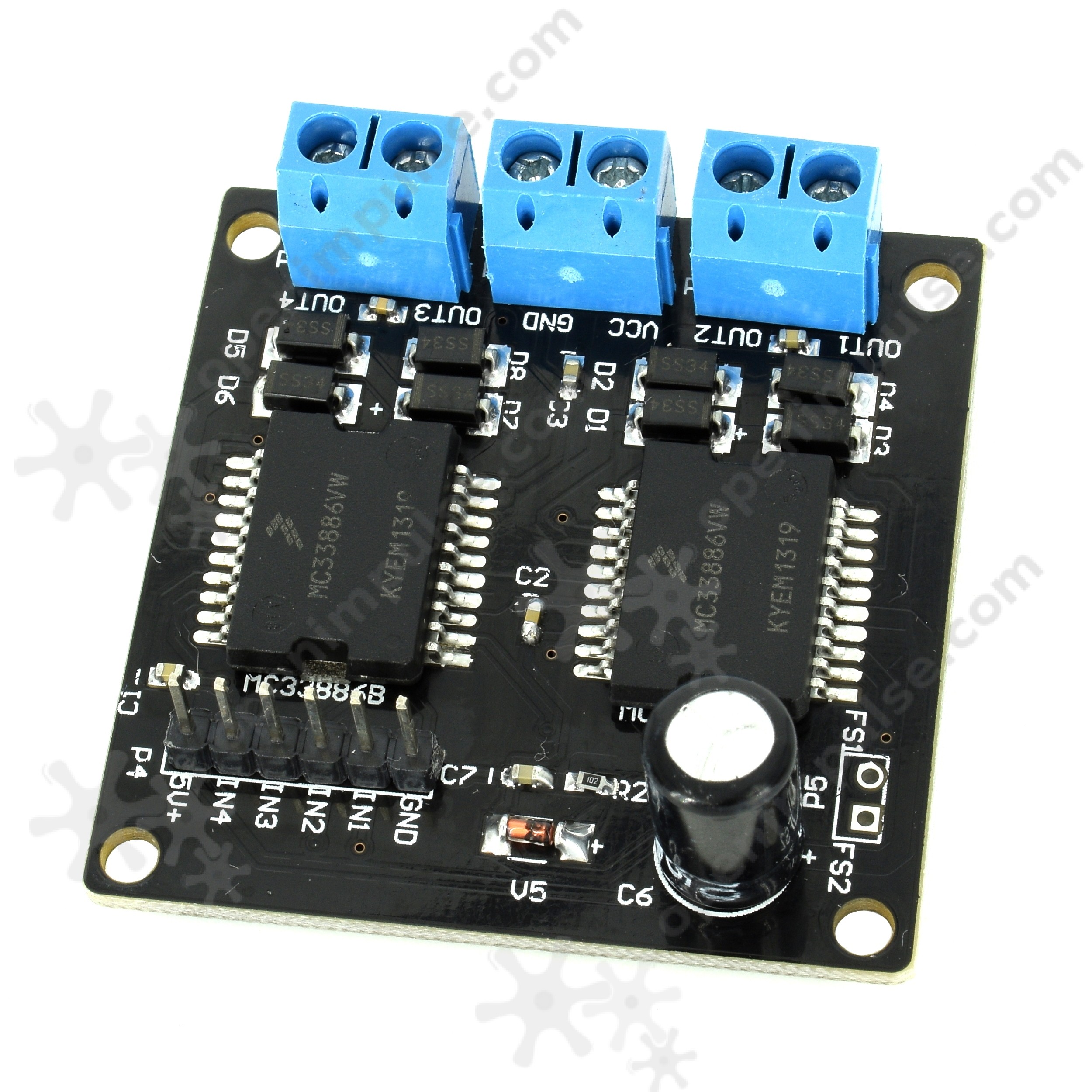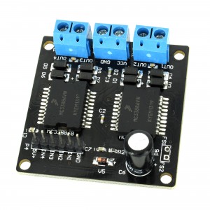 Dual motor driver capable of supplying currents up to 5 A for each channel, bearing the tension between 5 V and 40 V.