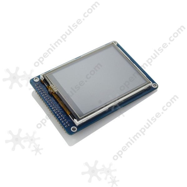 This 2.4 inch TFT touchscreen LCD module features a built-in SD card socket and a resolution of 240 x 320 pixels. It features a resistive touchscreen display, capable of outputing 262,000 of beautiful colors. Specifications