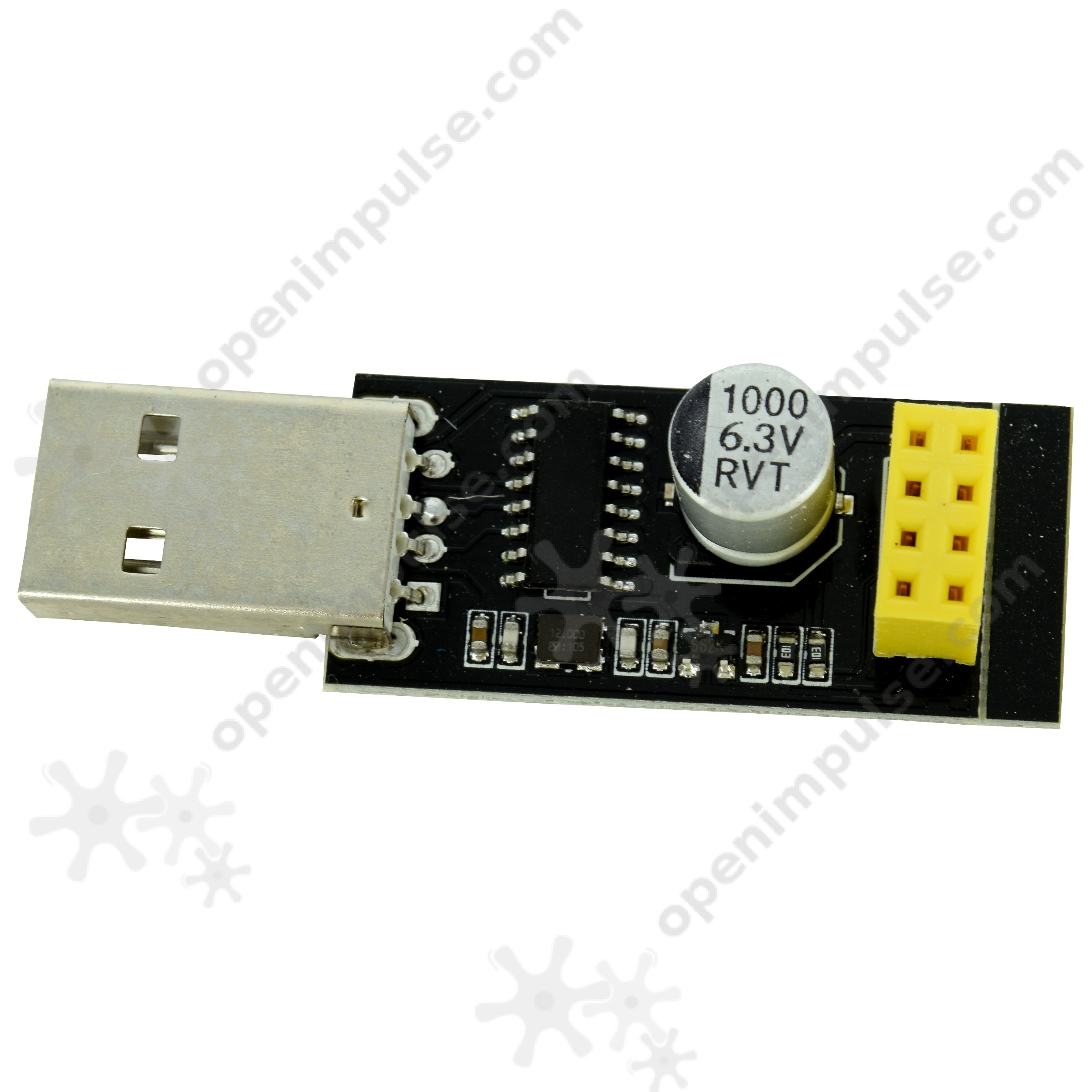 OverviewThis module converts the signal from a USB interface to a PC / laptop to match the serial module ESP8266.(ESP module not included). This converter module has CH340 chip which is reliable and with high performance. It is compatible with most Windows systems.The adapter features integrated capacitors to maintain current of 1000 uF. Specifications