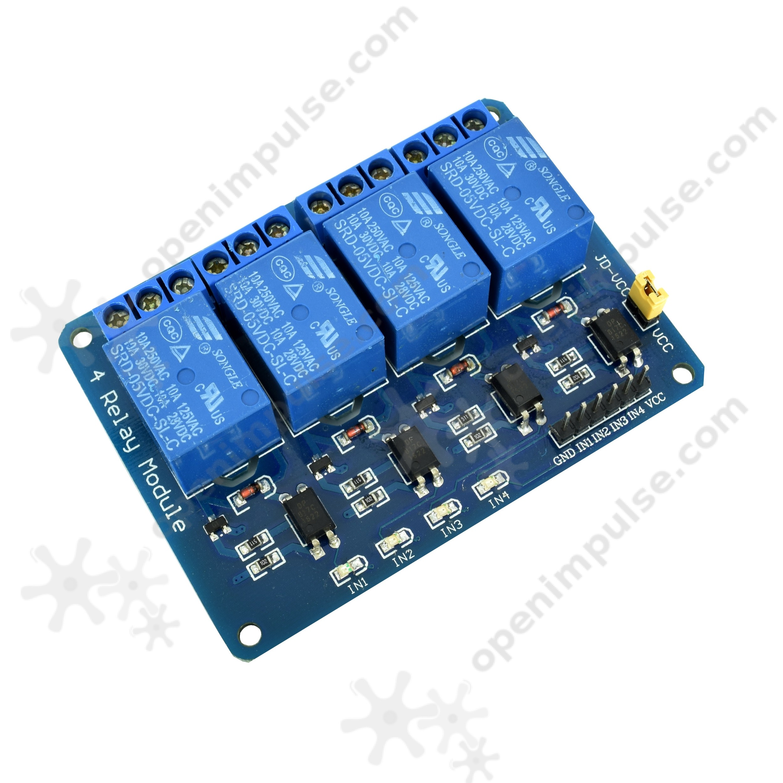 This optoisolated 4 relay module is useful for controlling several devices operating at high voltages appliances making it ideal for home automation and for your projects.