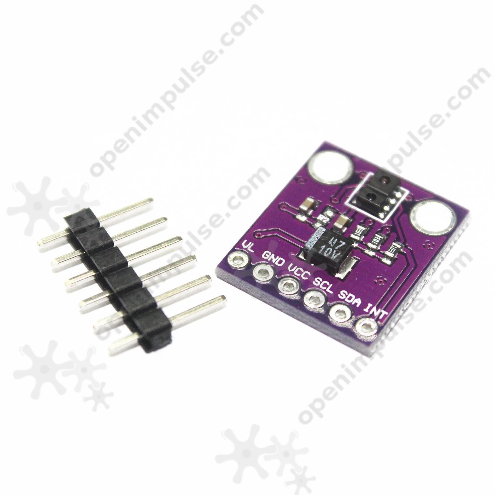 OverviewThis APDS-9930 gesture sensor provides ambient light sensor and proximity sensor integrated into a small module. It provides I2C interface-compatible Ambient Light Sensor (ALS) and proximity sensor in one 8-pin package. The ALS uses a dual photodiode to approximate illumination of 0.01 lux. The proximity sensor is capable of detecting objects at a distance of up to 100 mm. It works perfectly both in sunlight and in dark rooms. It has micro-optic lenses to provide efficient transmission and reception of infrared energy. Specifications